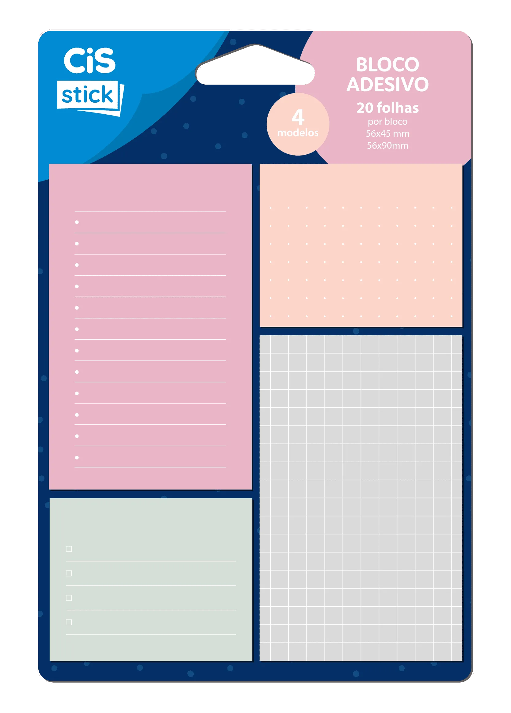 Nome do Produto: BLOCO ADESIVO CIS STICK 4 MODELOS C/20 FLS CADA
