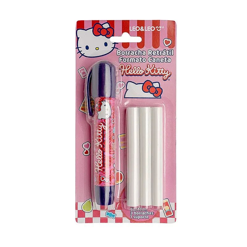 Uma borracha caneta retrátil da Hello Kitty que oferece praticidade e diversão para o dia a dia escolar.