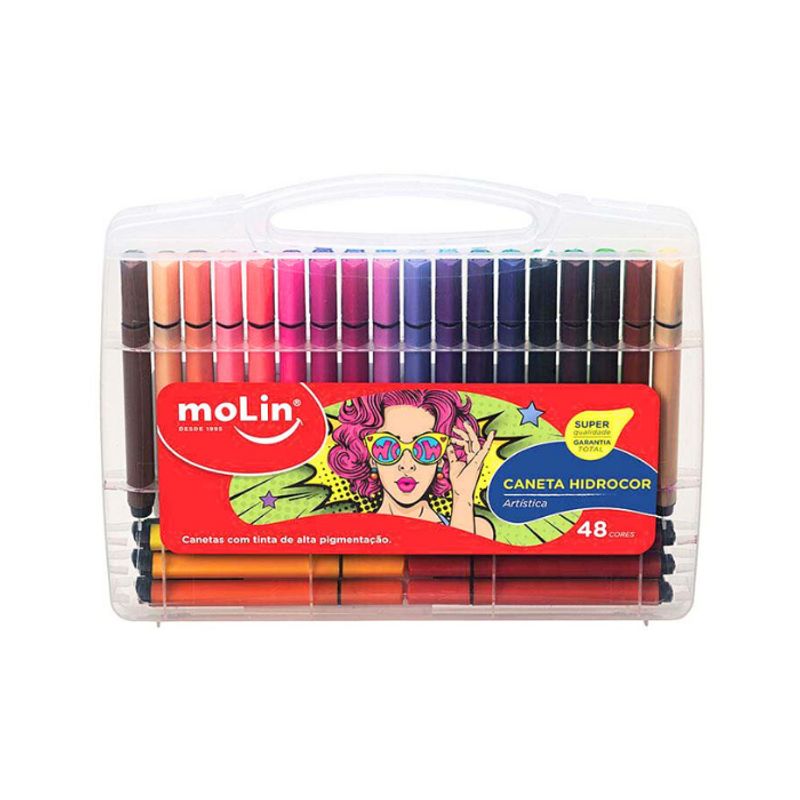 Desperte sua criatividade com a Caneta Hidrocor Artística Maleta Molin, um conjunto completo com 48 cores vibrantes para dar vida aos seus projetos.