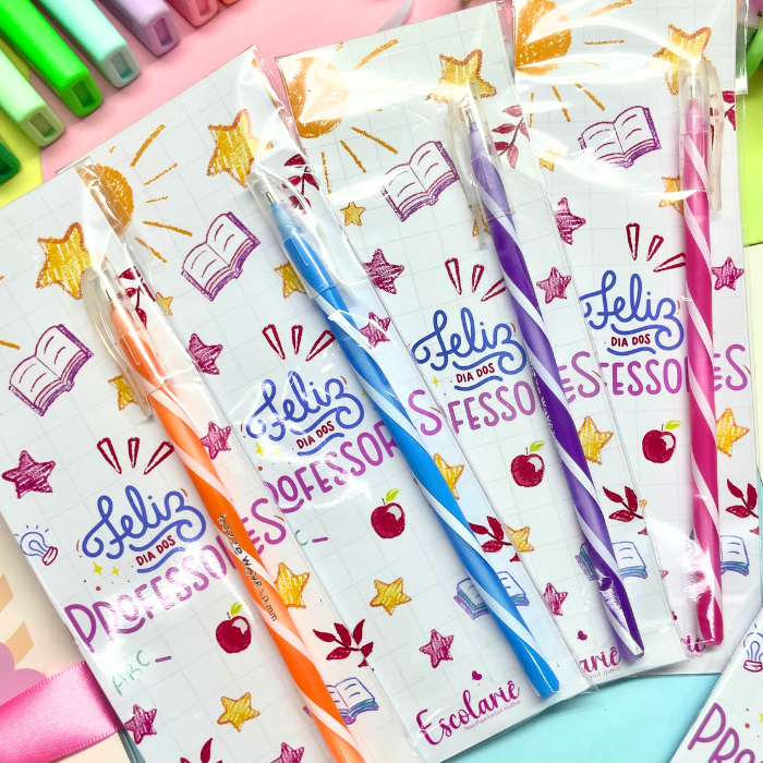Use a caneta gel para escrever mensagens de agradecimento e dedique o marca página aos professores especiais. Presenteie individualmente ou em conjunto, deixando seu toque especial no Dia dos Professores.