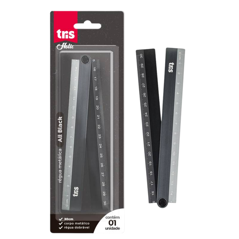 Eleve sua experiência de escrita com a Régua Metálica Tris Holic All Black 30cm Dobrável da marca Tris